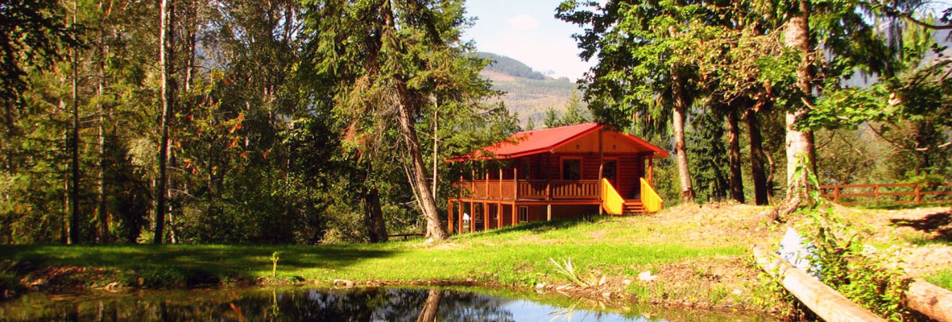 The fully contained cabins have all the comforts of home. Both cabins have covered decks that provide a lovely outdoor space.