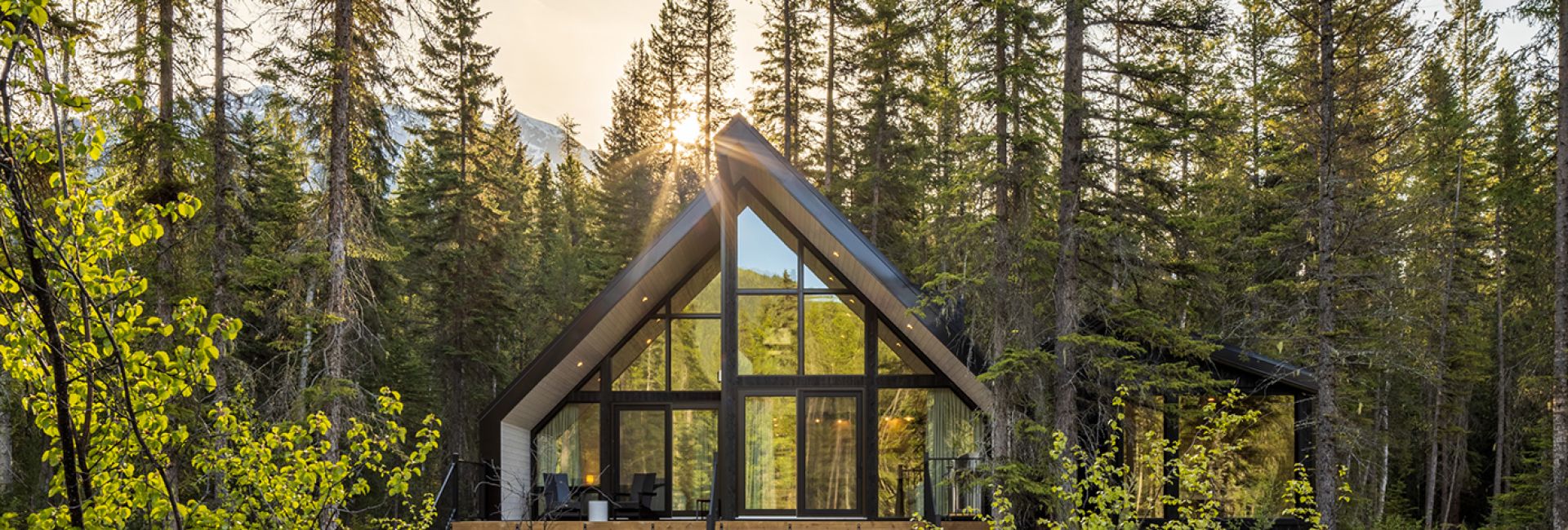 Golden CABN is a premium Scandinavian-inspired A-frame retreat set alongside the Blaeberry River.