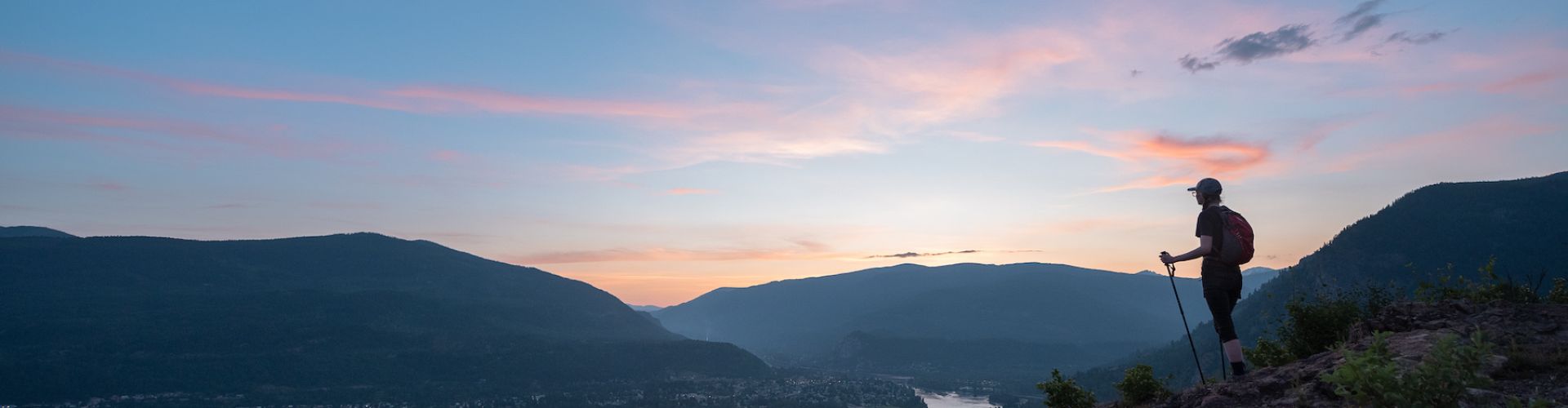 Offering spectacular views of the village of Nakusp, the Arrow Lake and the Monashee Mountains, this trail is accessible mostly by a gravel road. From the 4-way stoplight in downtown Nakusp, drive north on Hwy 23 for 2.5-km. Turn right on to the Hot Springs Road. Drive 3.6-km up the Hot Springs Road. Turn left onto the Kuskanax Mountain Road (gravel). Then, drive (or hike) 1.5 km-up the Kuskanax Mountain Road and you will find Vicky’s View on your left.