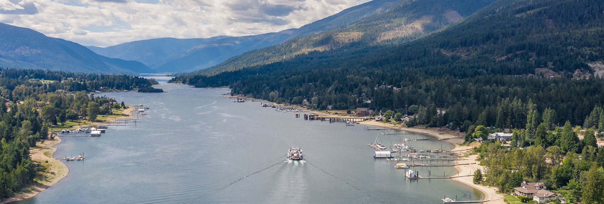The Kootenay Lake Ferry travels between Balfour and Kootenay Bay. The free ferry is busy throughout the summer transporting cars, trucks and motor homes across the main lake – a scenic cruise that takes a little more than a half hour from dock to dock.