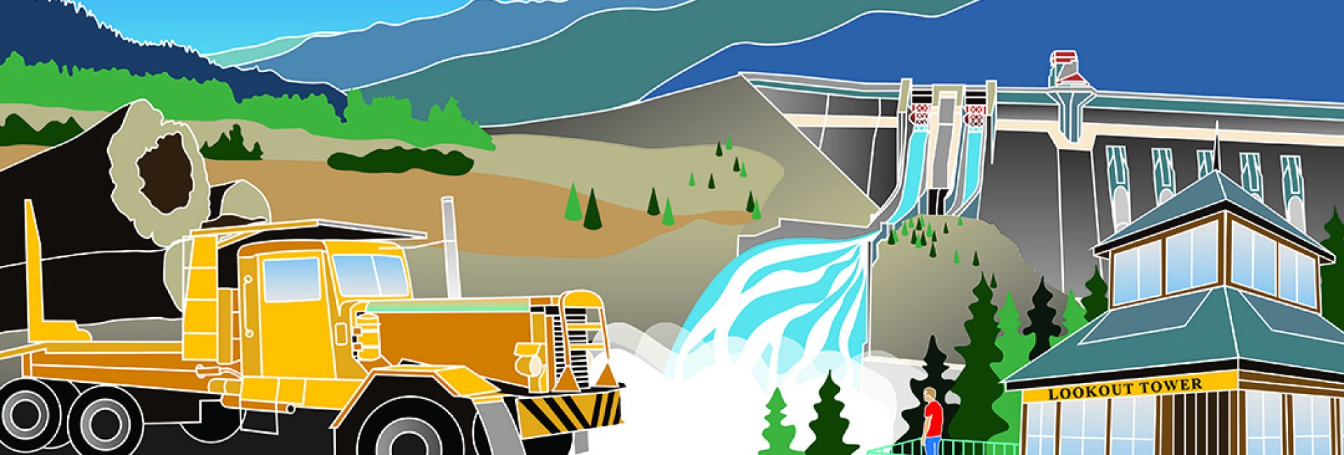 There are indoor museum gallery exhibits and artifacts as well as a large outdoor equipment display. Additionally, there is a lookout over the Revelstoke Dam and the Riverside Forest Walk.