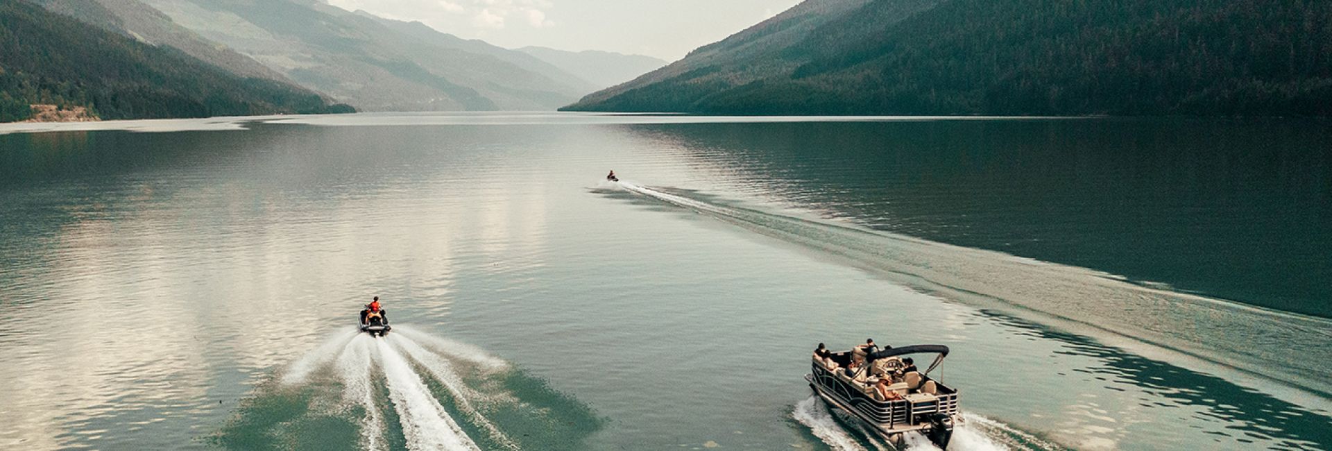 Enjoy the day on Lake Revelstoke paddling a canoe or SUP rental or go motorized with their surf tours, pontoon boat or Sea-Doo rentals.