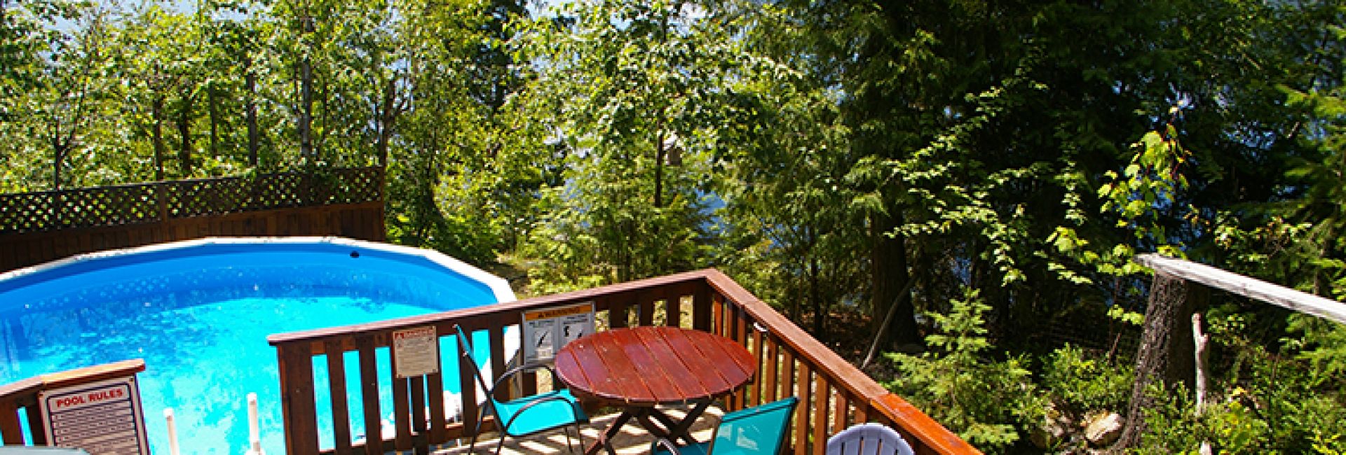 The cottage is perched on a rocky bluff above Upper Arrow Lake offering panoramic lake views and breathtaking vistas of Mount Odin and surrounding peaks.Enjoy the hot springs water from the renowned Halcyon Hot Springs in your own private above ground swimming pool and hot tub.