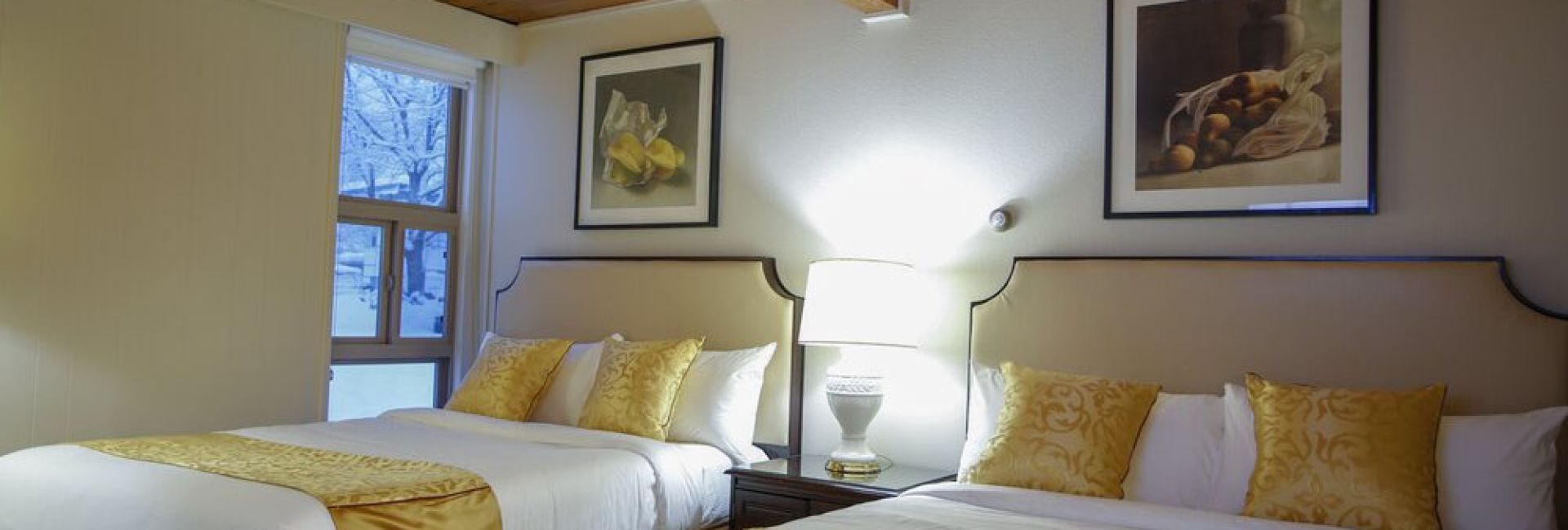 The Grizz Hotel offers two types of rooms: the standard double queen and standard king. The standard double features two queen beds and the standard king features a king sized bed. All mattresses are from Simmons so you can rest comfortably after a great day of activities.