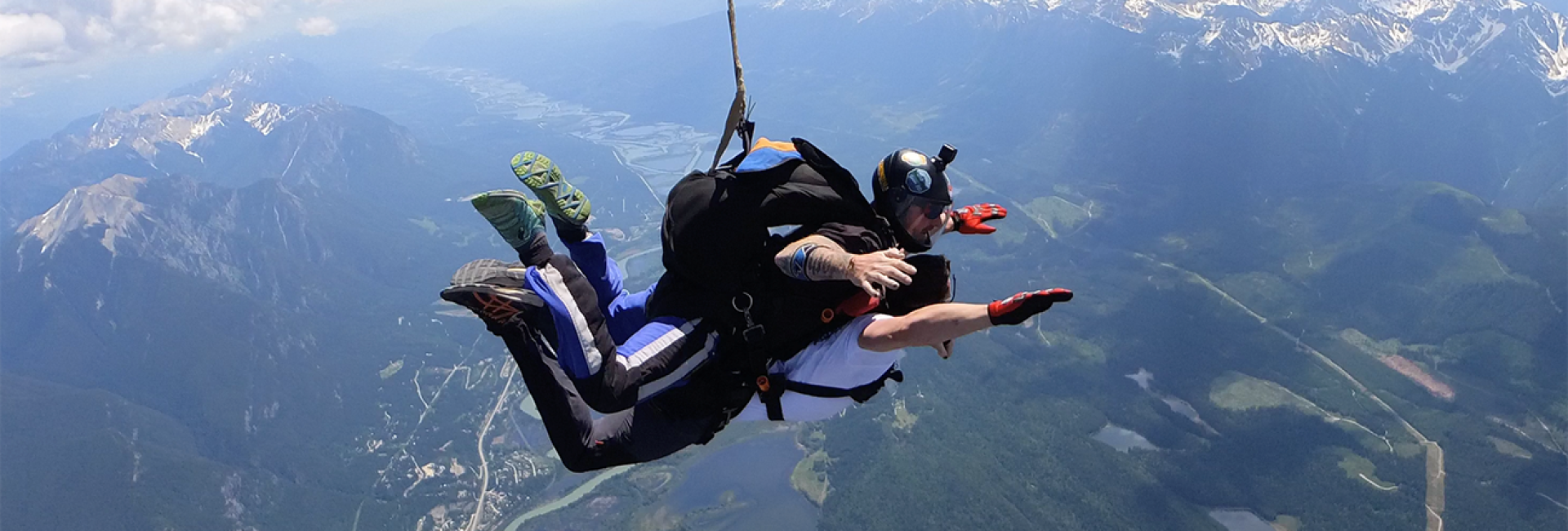 The Tandem Skydive experience begins with a flight of breathtaking views of the Canadian Rockies and the majestic Kicking Horse River. At 13,000 feet, you will experience the ultimate adrenaline rush of free falling at 120 MPH over the Rocky Mountains.