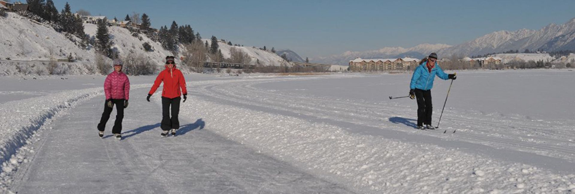The Whiteway is a 15 km (9 mi) groomed track that runs all the way around the lake and connects the towns of Invermere and Windermere. The Whiteway has tracks for classic cross-country skiers, a groomed skate skiing track and a cleared ice-skating track.