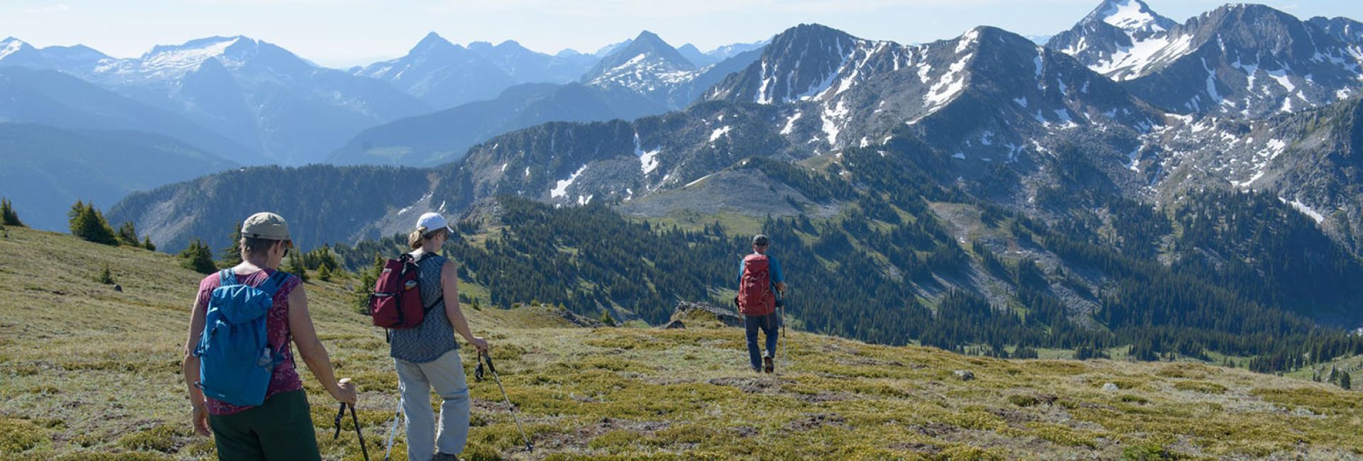 It is true wilderness hiking in a unique and rarely explored mountain range. The terrain is vast, the alpine meadows are teeming with flowers and the peaks are majestic. From sparkling alpine tarns to the distant mountain ranges, there is always beauty to behold. Multi-day alpine hiking trips are offered through beautiful alpine areas filled with flowers, lakes and rocky peaks and ridge lines. Stunning panoramic views of the Valkyr, Valhalla and Monashee mountain ranges greet you at every turn.