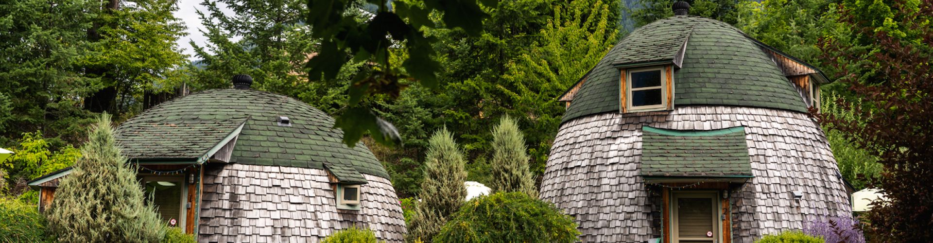In the lakeshore community of New Denver, you can find the Adventure Domes – four energy efficient cottages with a strikingly unique shape. Views of the Selkirk and Valhalla mountains make this spot ideal for an off-beat getaway. (Nearest Hot Springs – Ainsworth Hot Springs Resort a 1 hour drive and Nakusp Hot Springs a 50-minute drive.)