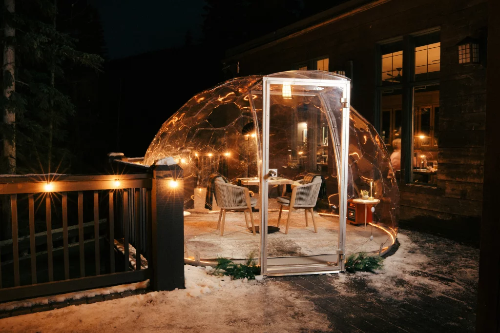 Experience an exceptional winter dining opportunity at Emerald Lake Lodge in Yoho National Park. The new Emerald Sky Dome offers an elegant, transparent setting where thoughtfully curated details and locally inspired cuisine create a distinctive atmosphere. Ideal for couples or small groups of up to six, guests are invited to enjoy a six-course chef’s tasting menu, complemented by optional wine, cocktail, or non-alcoholic pairings. Enjoy a memorable winter experience at the lodge by exploring Emerald Lake on snowshoes, embarking on a nordic skiing adventure, or hiking and snowshoeing to Hamilton Falls or Wapta Falls to admire the stunning frozen waterfalls.