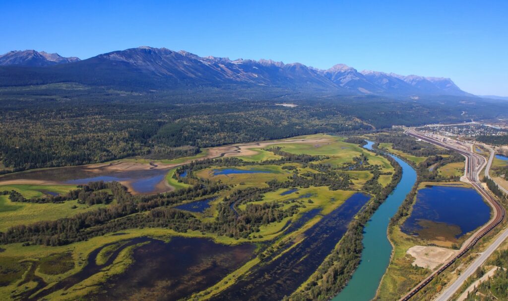 The Columbia River undergoes significant changes as it flows northwest toward past Golden/Donald. The construction of the Mica Dam has resulted in a larger formation of Kinbasket Lake, a substantial reservoir that has dramatically widened the river. Upstream of the dam, the river features a combination of rapids and tranquil sections. Beyond the Dam, the river’s channel becomes more defined, though it continues to be shaped by hydroelectric reservoirs.